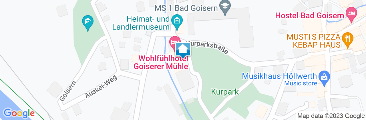 Eine magische Anziehungskraft übt die einzigartige Lage der Goiserer Mühle, direkt im gepflegten Kurpark von Bad Goisern, auf viele unserer Gäste aus. Unser 4-Stern Wohlfühlhotel liegt unmittelbar am romantisch dahin plätschernden Mühlbach, wo man den zahlreichen Fischen und Enten beim Schwimmen zuschauen kann oder einfach nur die Beine im Bach baumeln lässt. Ein besonders reizvoller Mix aus Tradition und Moderne findet sich sowohl in der Architektur als auch in allen Räumen unseres Hauses wider. Romantische Stüberl mit altem Gewölbe werden kombiniert mit zeitgemäßen Möbel und moderner Kunst.Haus mit Tradition