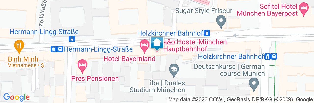 Leave the station München-Hauptbahnhof DB (Munich-Central): Use the right exit to Bayerstrasse and you will find the a&o right on the opposite side of the road.