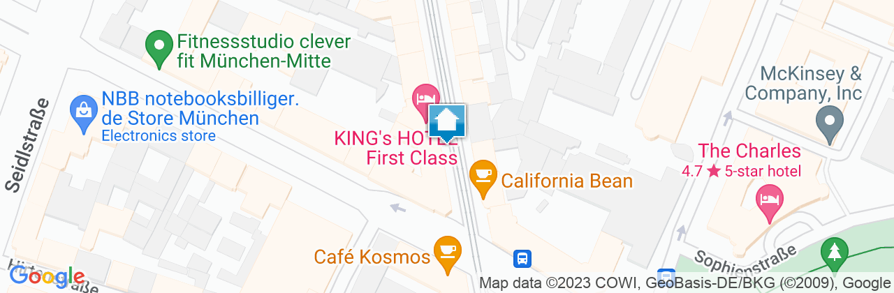 Das KING’s Hotel First ist die beste Adresse für technik-affine Reisende, die ein individuell geführtes Hotel im Münchner Zentrum zu schätzen wissen – und für die eine Übernachtung in München mit Stil und Style verbunden sein soll. Dank der zentralen Lage des Hotels ist es nur ein Katzensprung zu allen beliebten Attraktionen der Stadt, zu den besten Restaurants und den interessantesten Geschäften in München.Zusatzinformationen