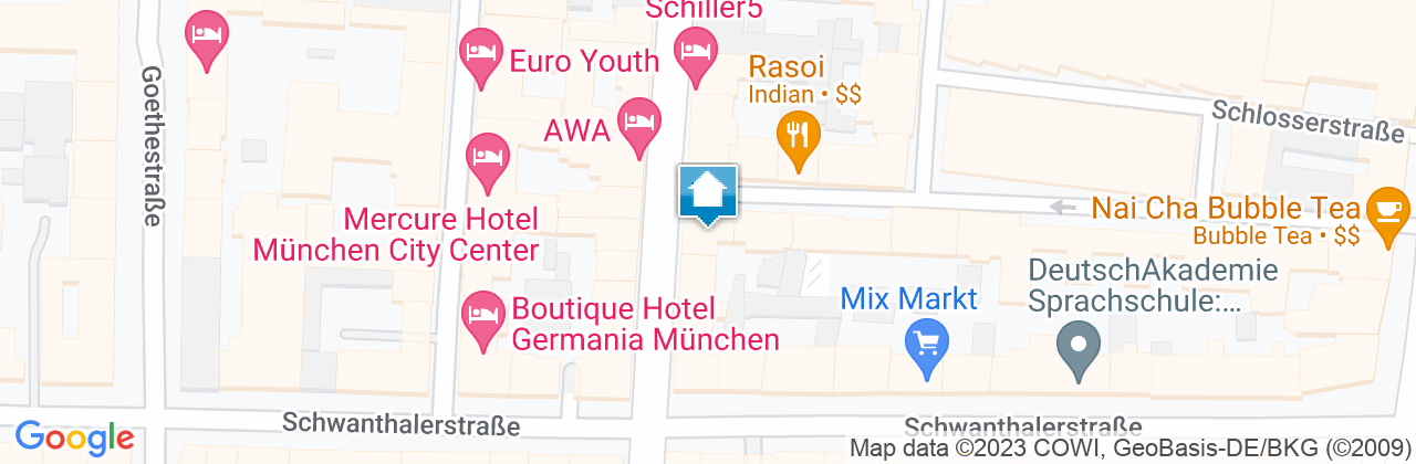 Vom Hauptbahnhof München zum Hotel Monaco sind es nur 300 Schritte. Vom Hauptausgang des Hauptbahnhofs laufen Sie nach rechts bis zur Ampel Bahnhofsplatz Bayerstraße und überqueren die Bayerstraße. Hier sind Sie schon in der Schillerstraße, wo sich ca. 150 Meter weiter auf der linken Seite das Hotel Monaco finden.