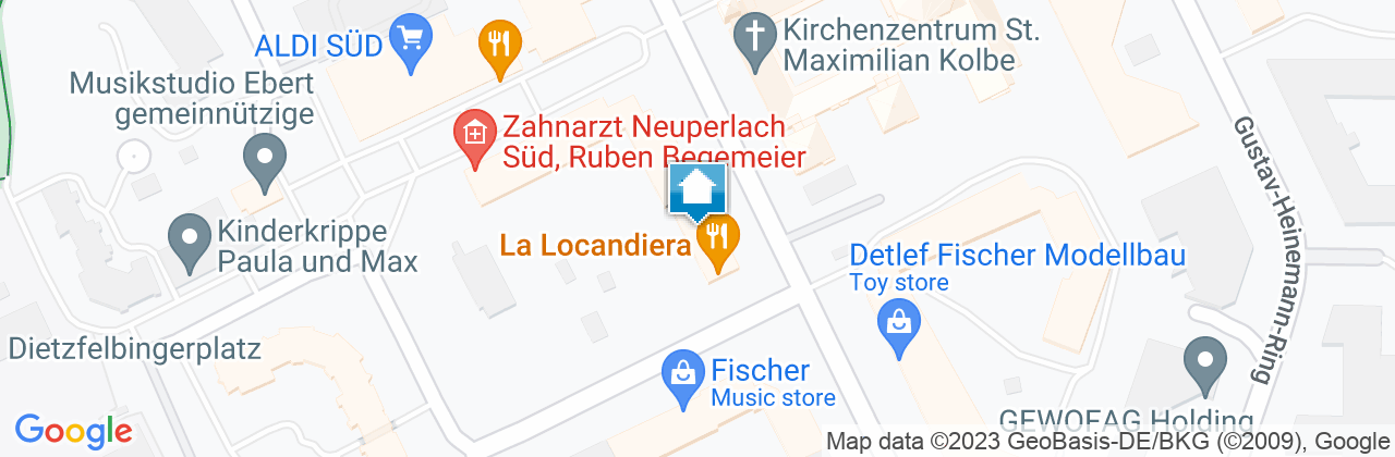Wir befinden uns im Stadtteil Neuperlach, nahe einiger namhafter Unternehmen wie Siemens, Wacker Chemie oder Allianz sowie dem zweitgrößten Einkaufszentrum Münchens, dem PEP (Perlacher Einkaufs Passagen).