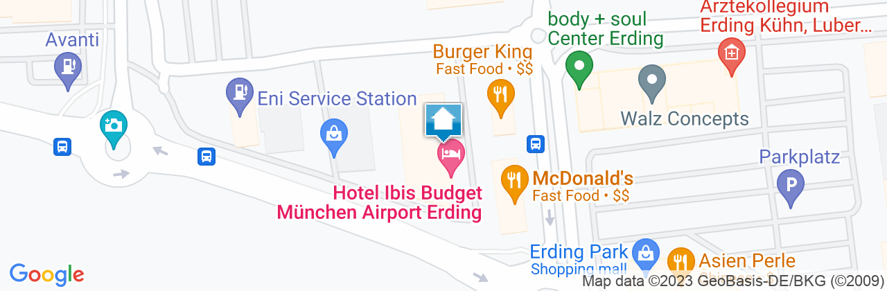 Das "ibis Budget Munchen Airport Erding" erfreut sich an der verkehrsgünstigen und nahen Lage zum Flughafen München.Sie wohnen im Nordosten der Stadt und haben eine gute Anbindung zur A92 und A94. Der Stadtpark ist fußläufig schnell zu erreichen. Die Therme Erding erreichen Sie nach 2,5 km und in das Stadtzentrum von München sind es 43 km.