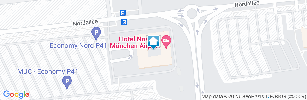 Die Bus-Linie 635 fährt alle 20 Minuten von beiden Terminals zum Hotel (ca. 5 Min). Die S-Bahnstation "Besucherpark" liegt 10 Minuten Fußweg entfernt. Sofern Sie ein Navigationsgerät nutzen, geben Sie bitte die PLZ 85356 und den Ort FREISING ein.