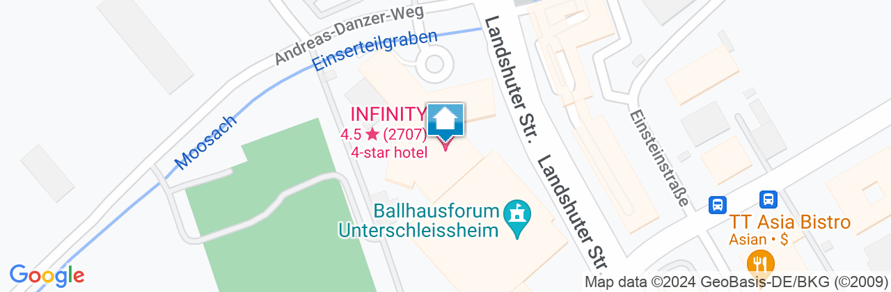 Das INFINITY Hotel & Conference Resort Munich in Unterschleißheim ist das größte Hotel und Konferenzzentrum in Süddeutschland und zugleich erste Adresse für Tagungen und Events. Direkt vor den Toren der Landeshauptstadt gelegen, mit optimaler Anbindung an Innenstadt, Messe und Flughafen, bieten wir Ihnen ein einzigartiges Hideaway für Veranstaltungen, private Feiern oder eine erholsame Auszeit zu zweit.Zusatzinformationen